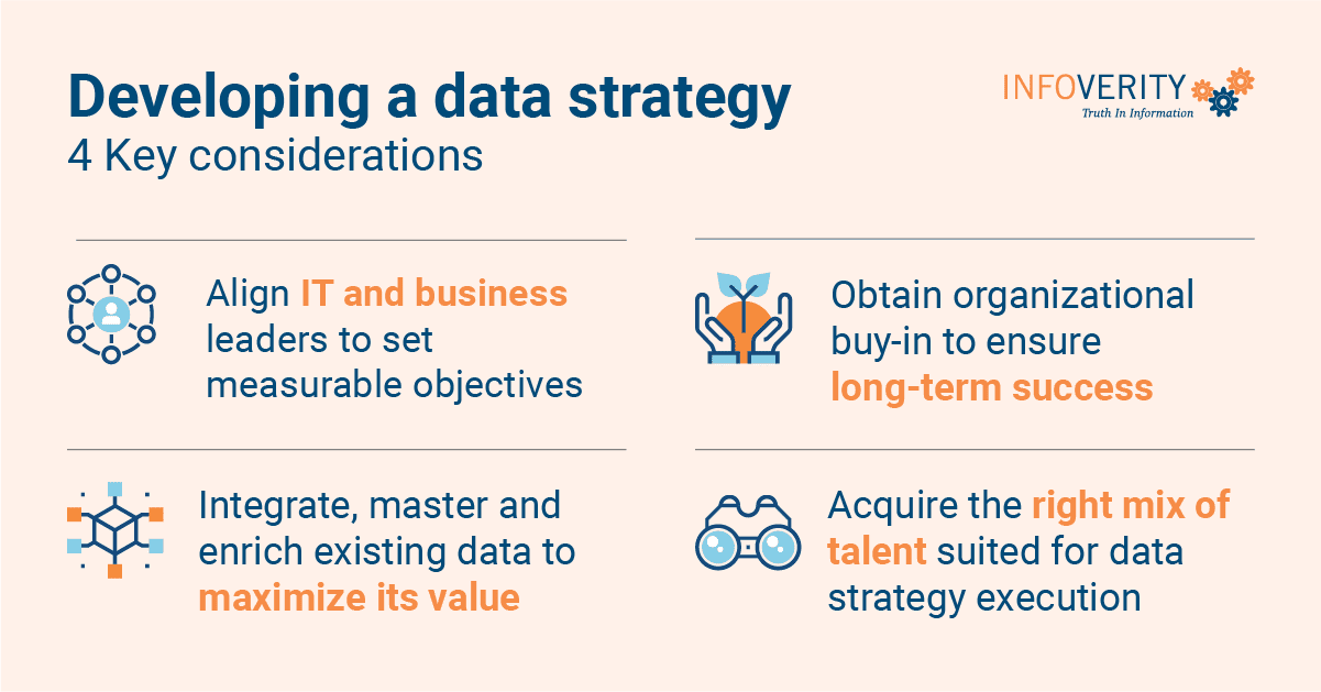 Implementing innovative solutions requires this level of commitment, both in terms of time and budget. Furthermore, without establishing a solid foundation for your digital transformation, you’re putting that investment at risk. Strategic initiatives of this magnitude require a well-defined data strategy.